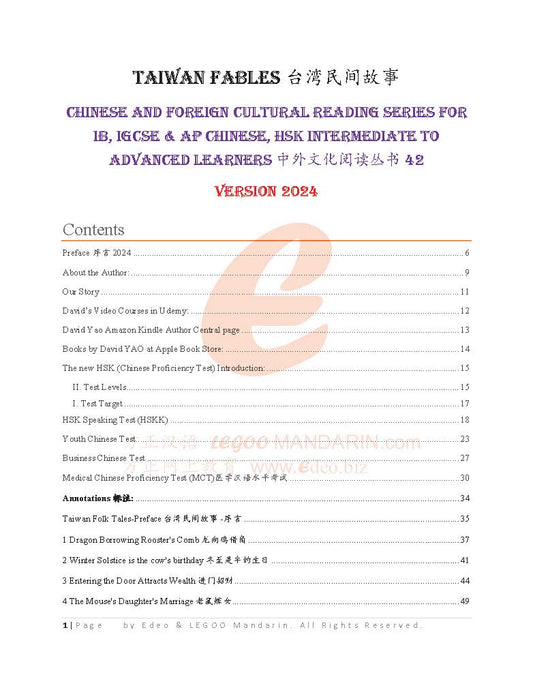 Taiwan Fables 台湾民间 Bilingual Chinese and Foreign Cultural Reading Series for IB, IGCSE & AP Chinese, HSK #42
