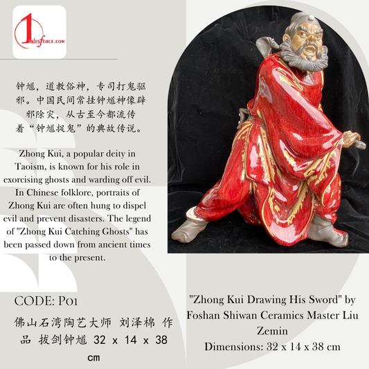 Master Ceramicist Liu Zemian's Work Drawing Sword Zhong Kui 2 佛山石湾陶艺大师 刘泽棉 作品-钟馗拔剑驱鬼(二)