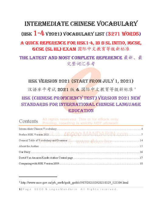Intermediate Chinese Vocabulary (3271 Words) 国际中文考试中级词汇
