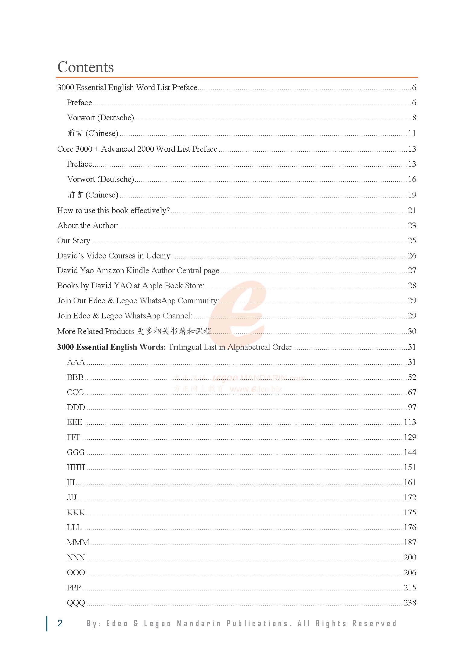 We hope that this book, The 5000 Essential English Words – A Trilingual Reference (English, German & Chinese): Core 3000 + Advanced 2000, will serve as a cornerstone in your journey — connecting you to cultures, unlocking opportunities, and inspiring you to reach true mastery.