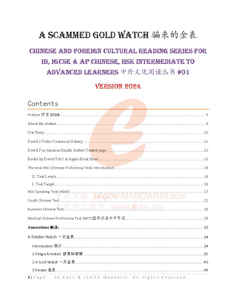 A Scammed Gold Watch 骗来的金表- Chinese and Foreign Cultural Reading Series for IB, IGCSE & AP Chinese, HSK Intermediate to Advanced Learners 中外文化阅读丛书 #01 Version 2024
