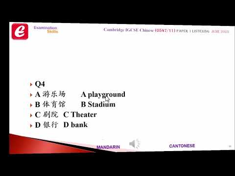The Cambridge IGCSE Mandarin Chinese - Foreign Language (0547) Paper 1 Listening is an exam that assesses students' ability to understand spoken Mandarin Chinese.