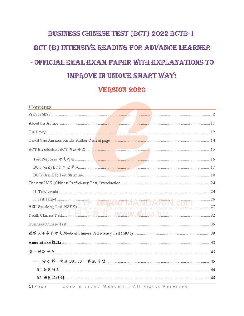 Advance Business Chinese Test BCT (B) Intensive Reading- The Ultimate Guide to Official Paper (BCTB-1 2022) with Explanations to Improve in a Smart Way! 中高级商务汉语考试官方考题