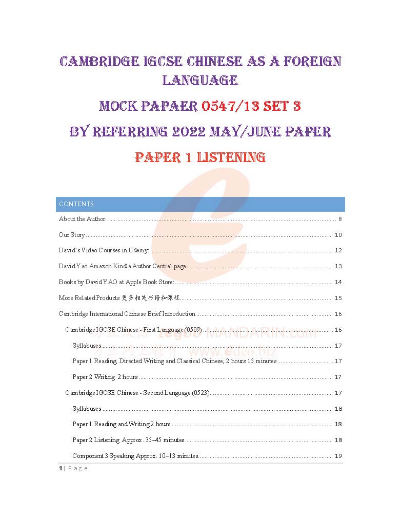 Cambridge IGCSE Chinese 0547-13 Paper 1 2022 Listening Set 3 剑桥中学会考中文听力真题解析- IGCSE Chinese as a Foreign Language Mock Paper by referring 2022 May/June 考题分析
