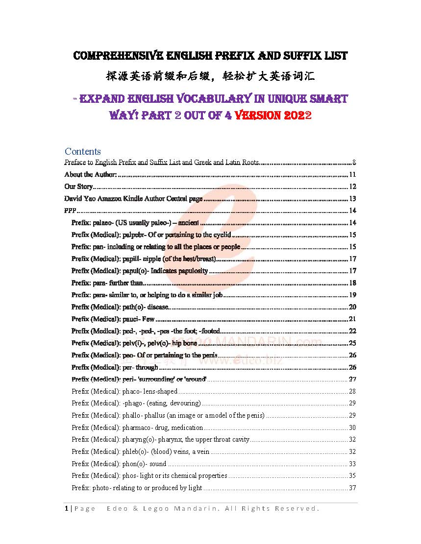 Comprehensive English Prefix and Suffix List Part 2/4 探源英语前缀和后缀,轻松扩大英语词汇 - Expand English Vocabulary in Unique Smart Way! Part 2 out of 4 Version 2022