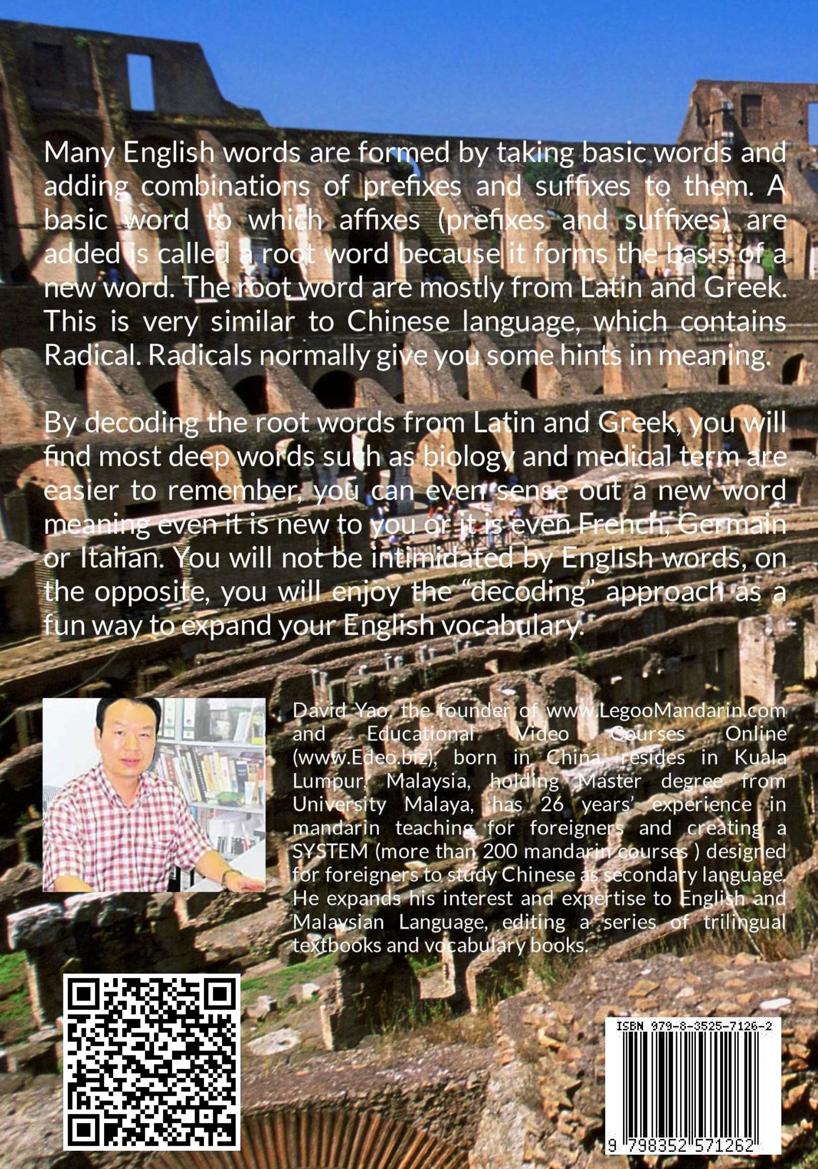 By decoding the root words from Latin and Greek, you will find most deep words such as biology and medical term are easier to remember, you can even sense out a new word meaning even it is new to you or it is even French, Germain or Italian. You will not be intimidated by English words, on the opposite, you will enjoy the “decoding” approach as a fun way to expand your English vocabulary.