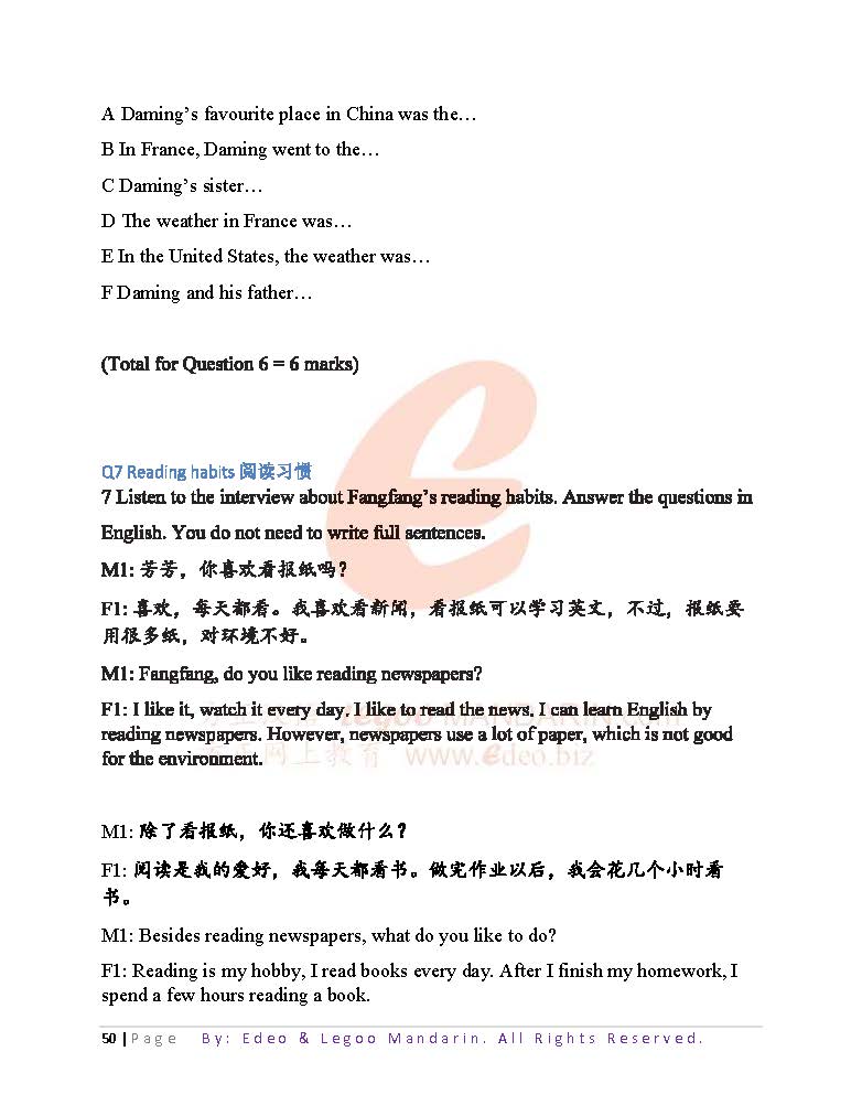 Edexcel IGCSE Chinese (4CN1_01) 2019 SAM Listening 中学会考中文听力理解解析- Intensive Revision Course Based on Past Exam Papers 全真考题速递