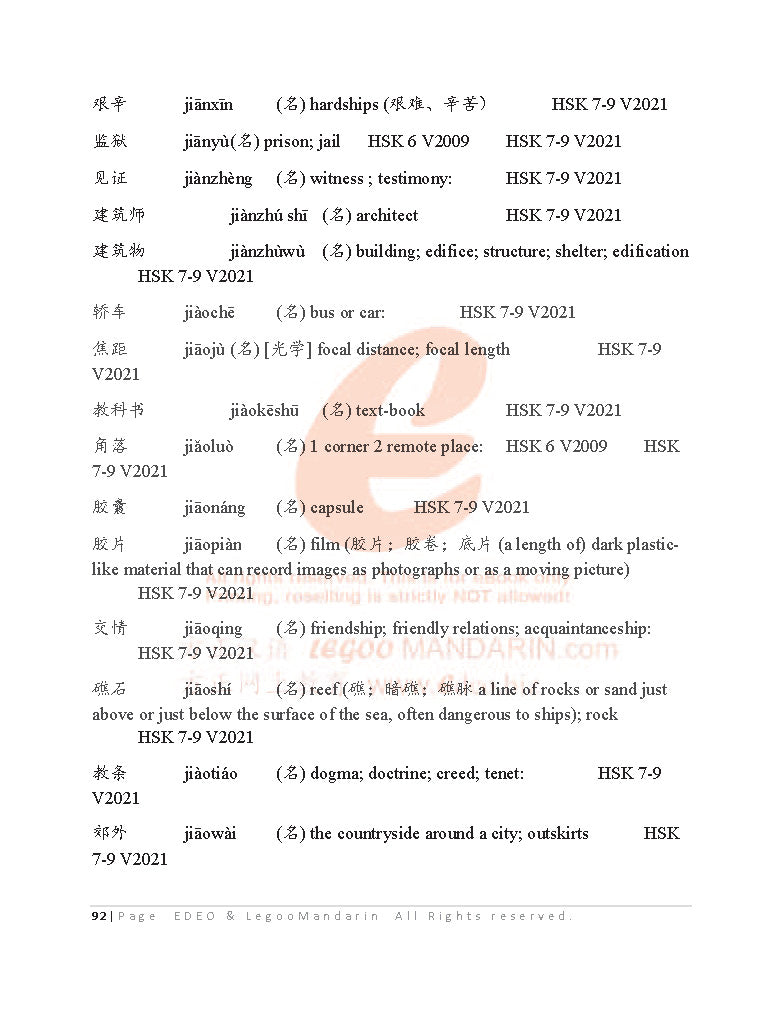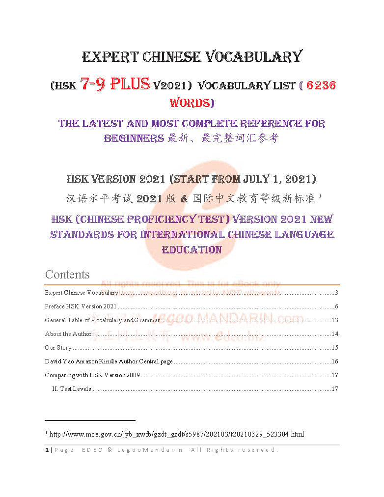 Expert Chinese Vocabulary (6236 Words) V2021 国际中文考试精通级词汇-A Quick Reference for HSK7-9 Plus, IB B HL, SAT IGCSE 0509, AP, GCSE A1 A2 Exam 国际中文教育等级新标准