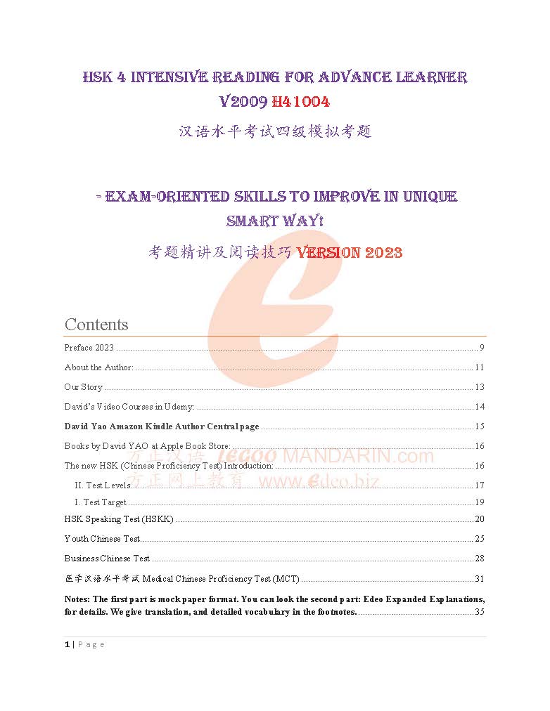 HSK 4 Intensive Reading for Intermediate Learner V2009 H41004 汉语水平考试四级模拟考题