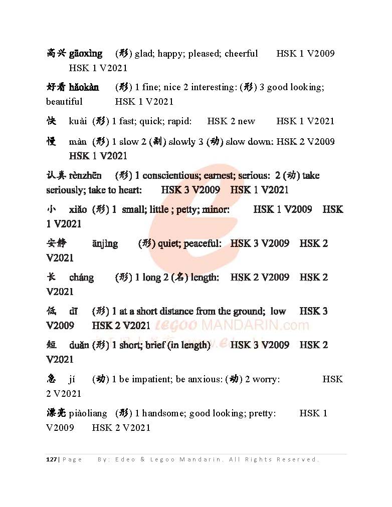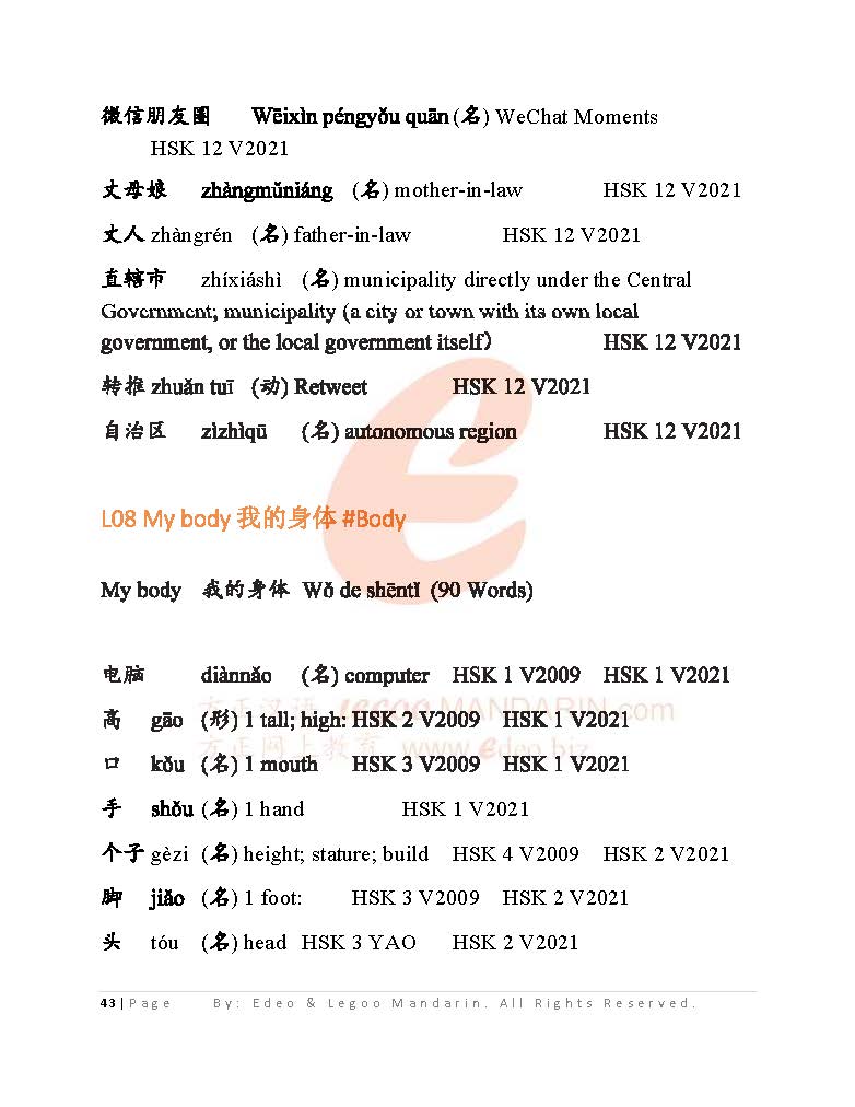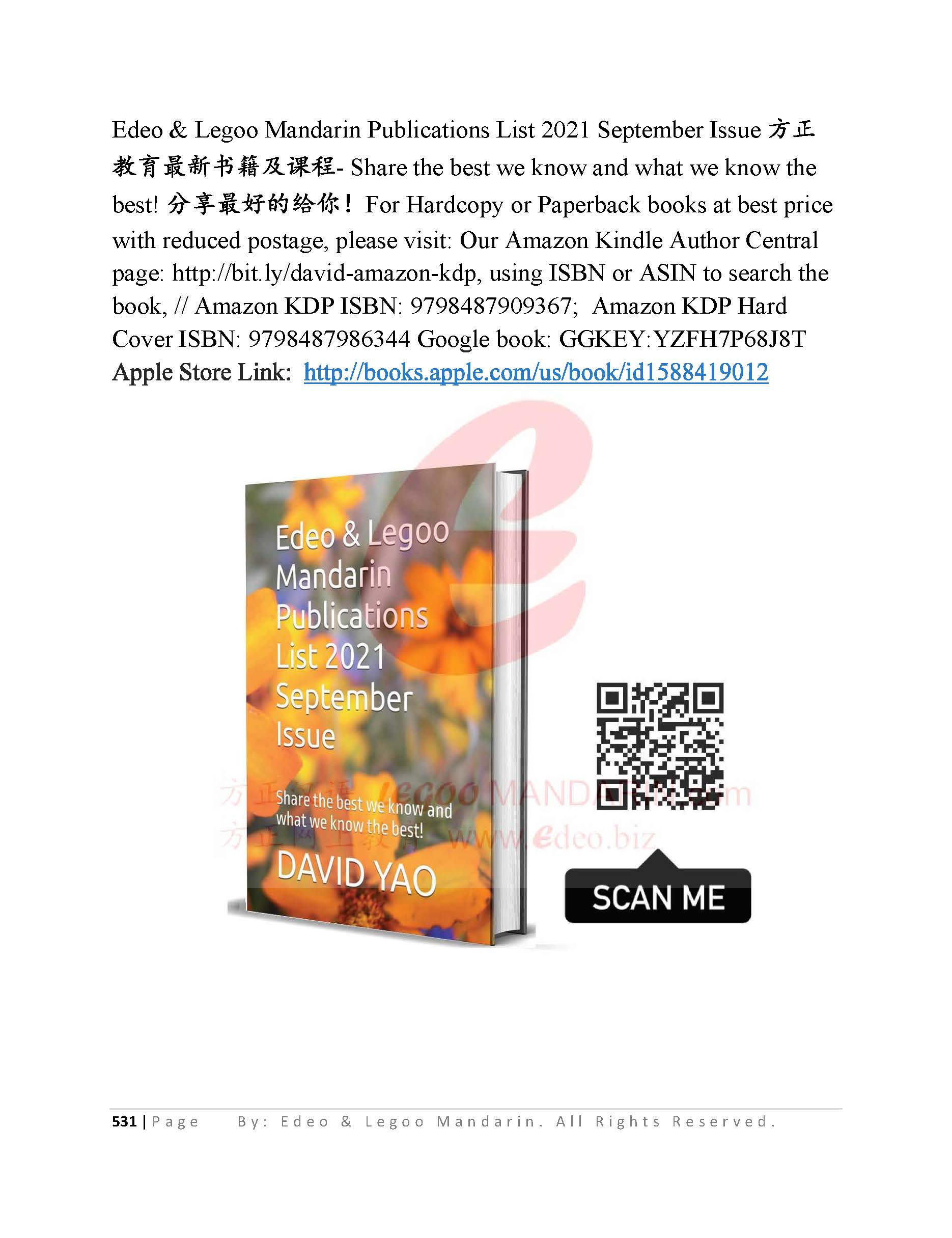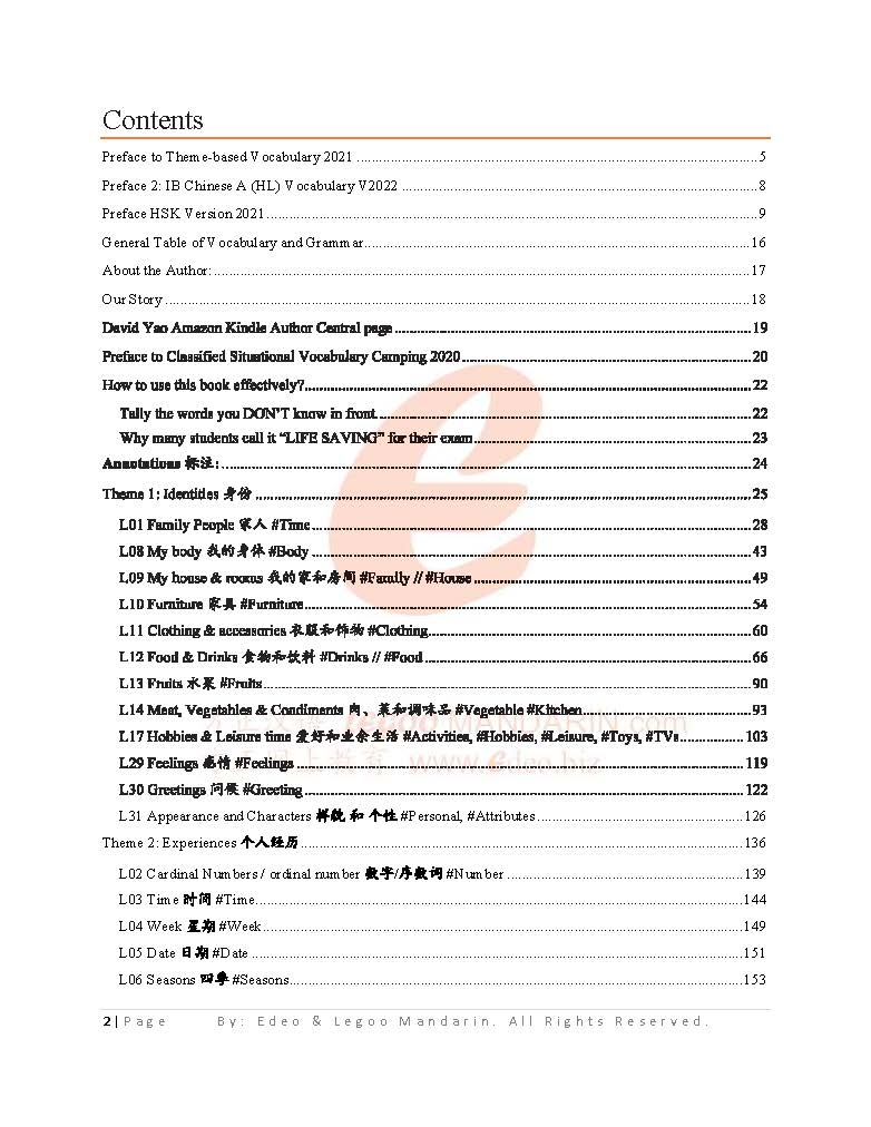By referring IB Chinese A (HL) Syllabus and HSK (Chinese Proficiency Test) Version 2021 New Standards for International Chinese Language Education, we added more vocabulary and give the HSK classification, both Version 2009 and the latest Version 2022. Within each topic, the vocabulary are arranged by HSK V2021 levels. This will give teachers a guidance for difficulty level and allow students to set priority on the vocabulary they should know to read, write or both. It will also help a lot for student to do revision. Some students call them as “LIFESAVING" book before their examinations.