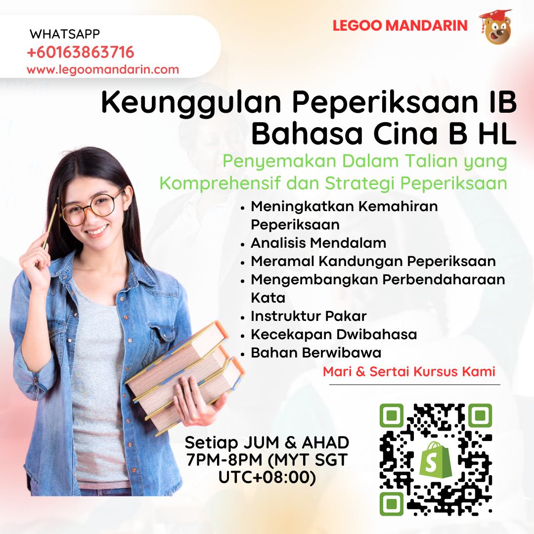 By enrolling in our IB Chinese B HL Exam Excellence course, you are investing in your success in the IB exam and gaining valuable language proficiency that extends beyond the classroom. Join us on this journey toward excellence!