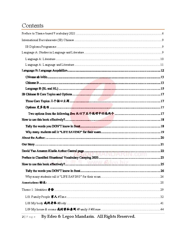 IB Chinese B (HL) Theme-based Chinese Vocabulary (4040 words) IB 中文 集中、分类、分级、主题词汇速成-The latest and most complete reference for your success Edition 2022 最新、最完整IB中文词汇参考