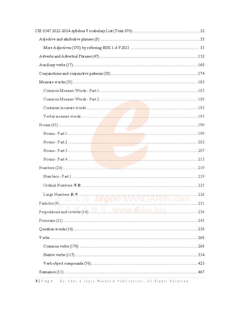Cambridge IGCSE Chinese (Foreign Language 0547) Chinese Vocabulary V1 - Classified Chinese Vocabulary by Parts of Speech - 2025 Edition