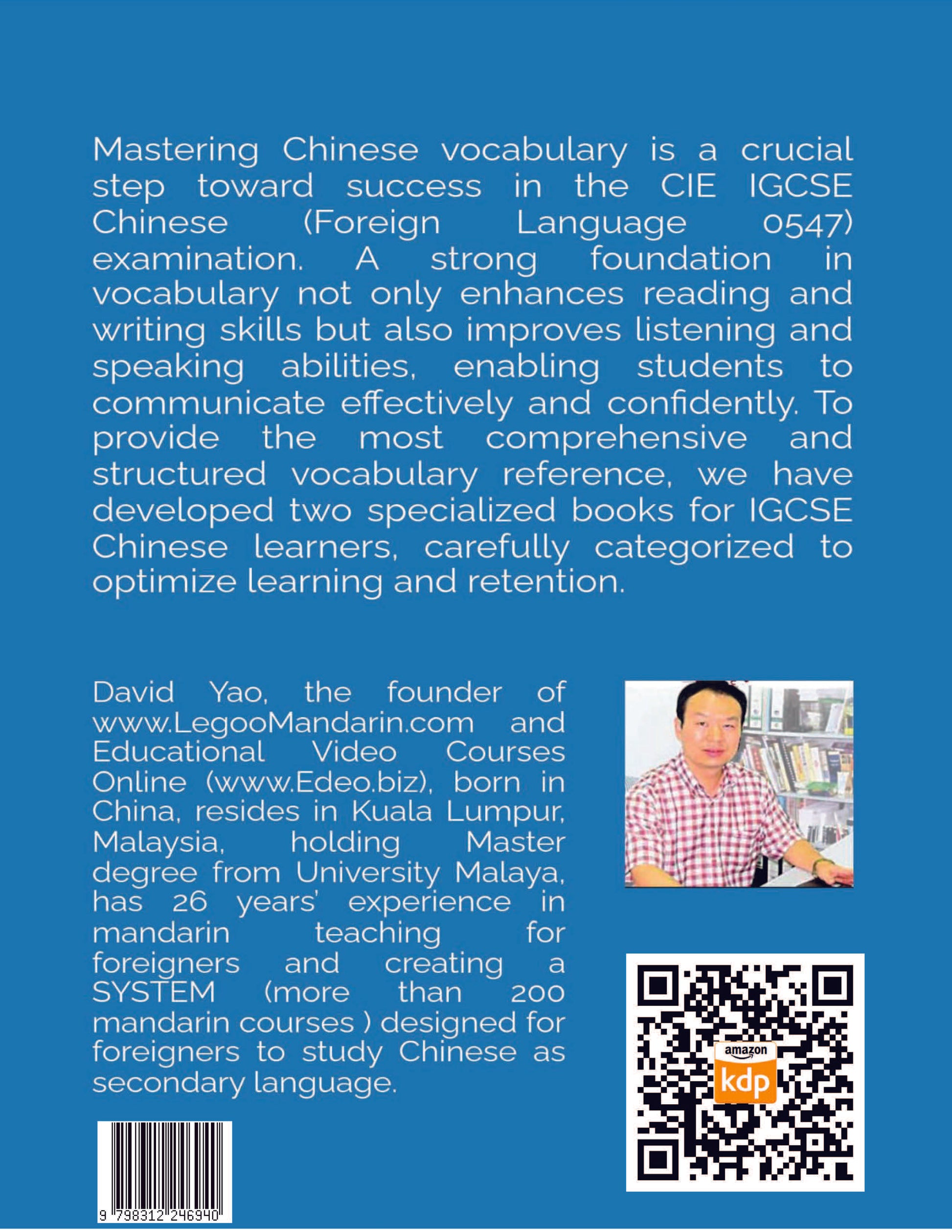 Mastering Chinese vocabulary is a crucial step toward success in the CIE IGCSE Chinese (Foreign Language 0547) examination. A strong foundation in vocabulary not only enhances reading and writing skills but also improves listening and speaking abilities, enabling students to communicate effectively and confidently. To provide the most comprehensive and structured vocabulary reference, we have developed two specialized books for IGCSE Chinese learners, carefully categorized to optimize learning and retention.
