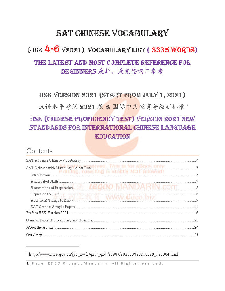 SAT Chinese Advance Vocabulary (3335 Words) V2021 国际中文考试高级词汇