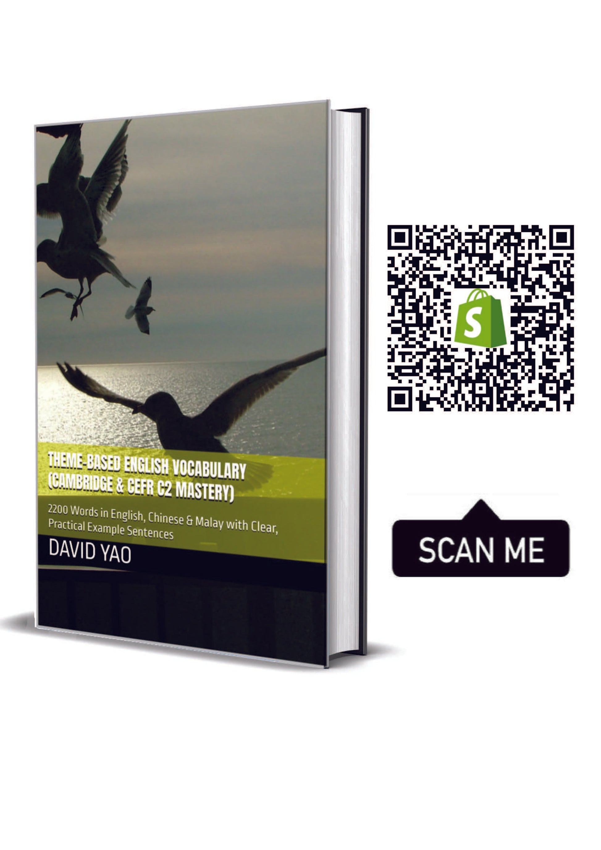 用《主题式英语词汇(C2精通)》开启您的语言潜能 — 收录2200多个强大词汇,涵盖英语、中文(附拼音)和马来语(附词根)!