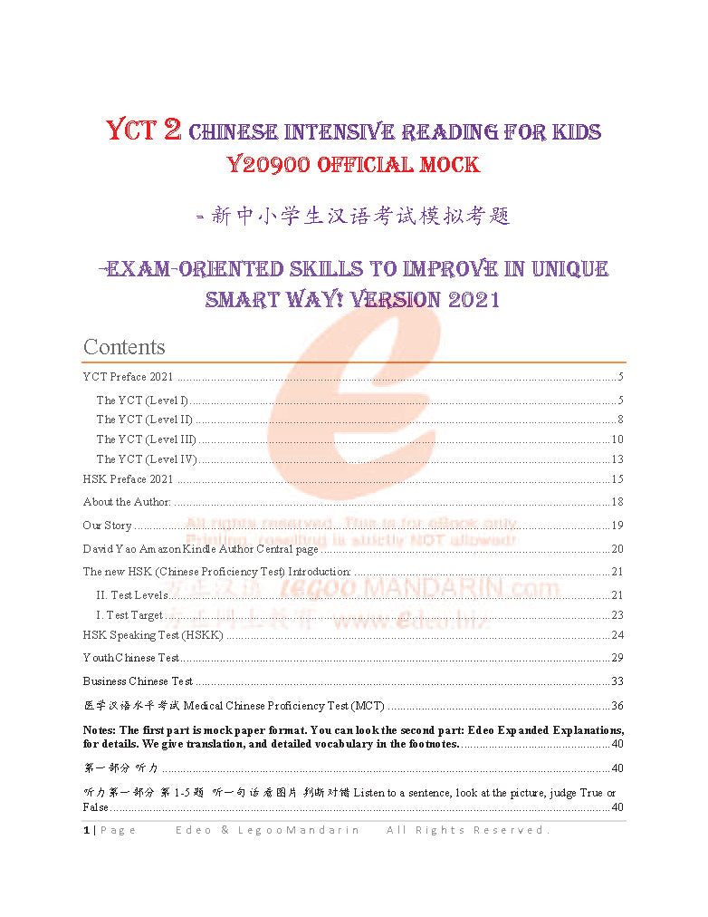 YCT 2 Chinese Intensive Reading for Kids Official Mock 少儿汉语考试模拟考题 -Exam-oriented Skills to Improve in Unique Smart Way! Version 2021 新中小学生汉语考试