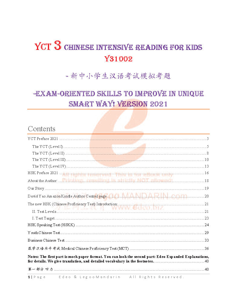 YCT 3 Chinese Intensive Reading for Kids Y31002 少儿汉语考试模拟考题