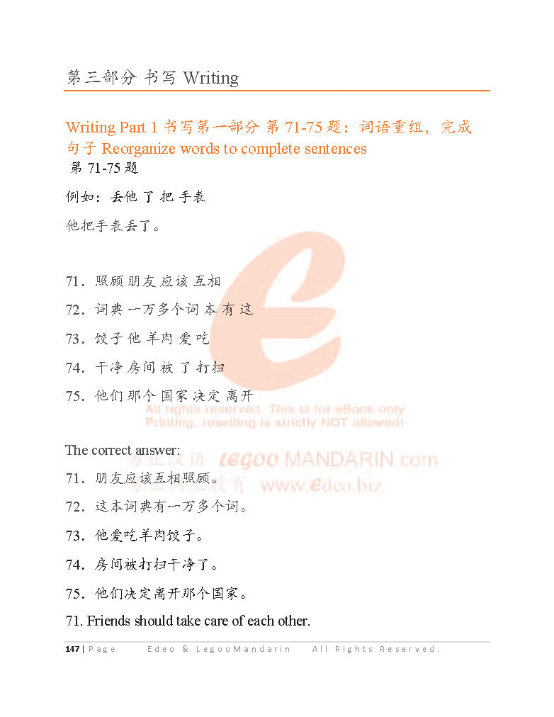 The YCT (Level V) is intended for young students who have studied Chinese for more than two semesters, with 2-3 class hours per week. These students have mastered 600 commonly used words and related grammar patterns.